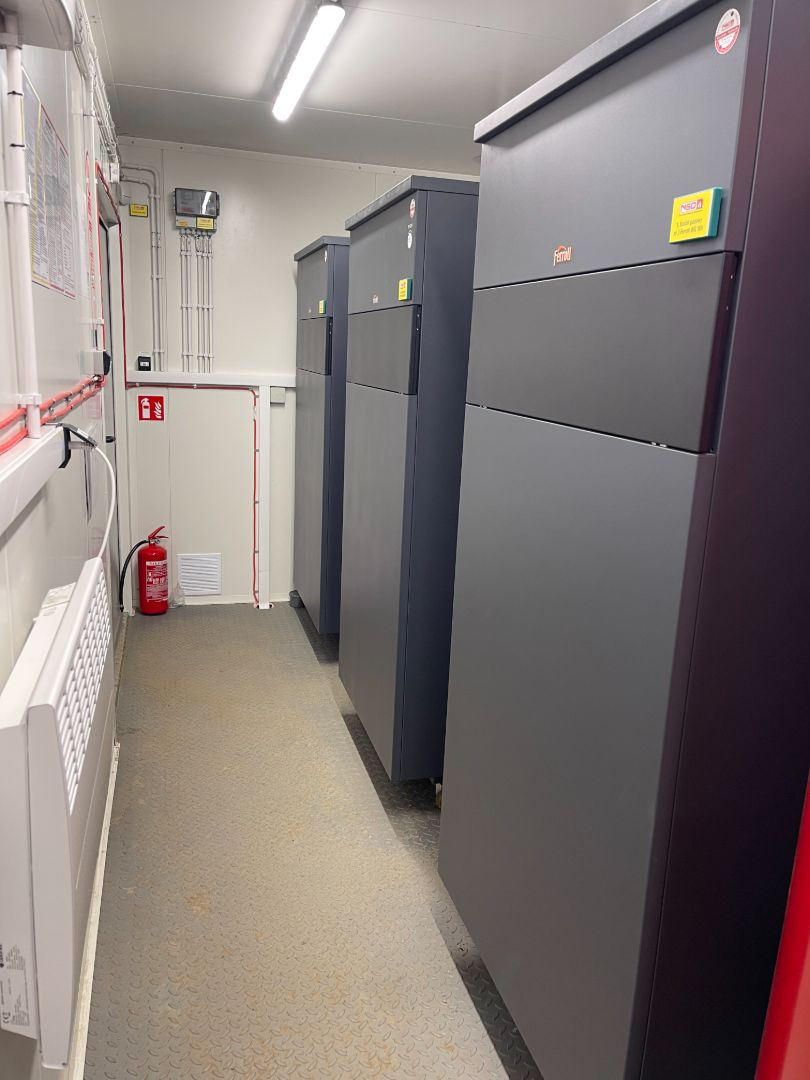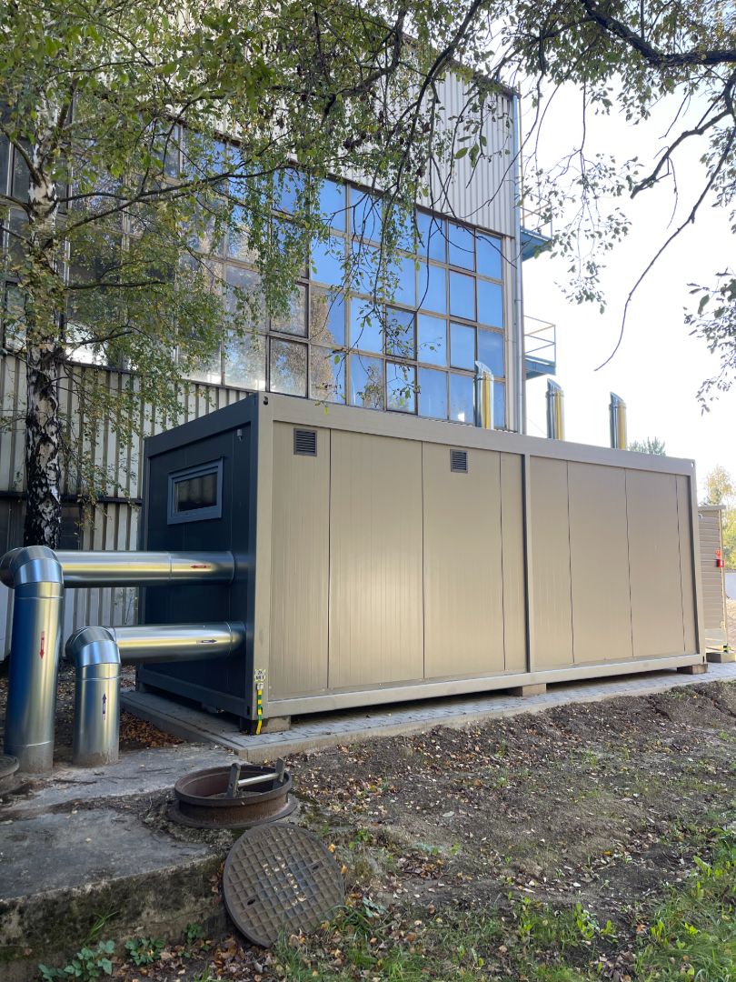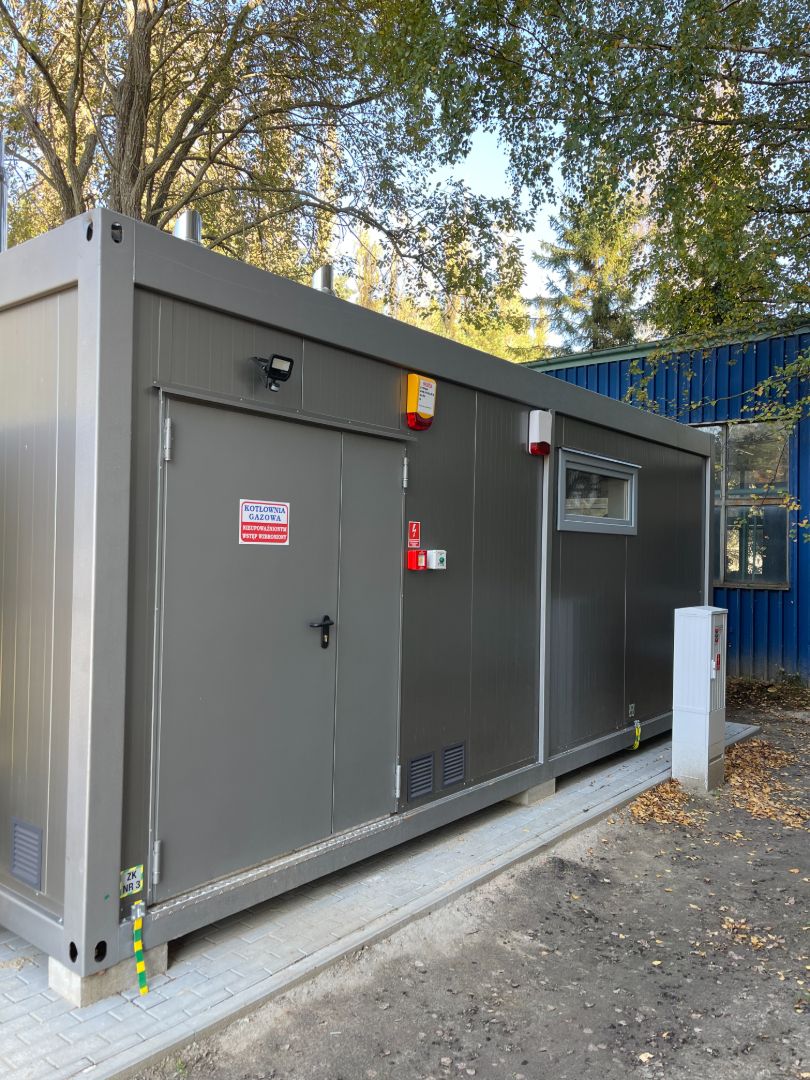 W ramach zadania nasza firma wykonała dokumentację projektową oraz budowę wraz z dostawą kompletnej kotłowni kontenerowej opartej na trzech kotłach gazowych Ferroli Big 300 o łącznej mocy 1MW. Wykonaliśmy również instalacje trzech zbiorników podziemnych na propan o pojemności 6700l każdy wraz ze stacją odparowania gazu.